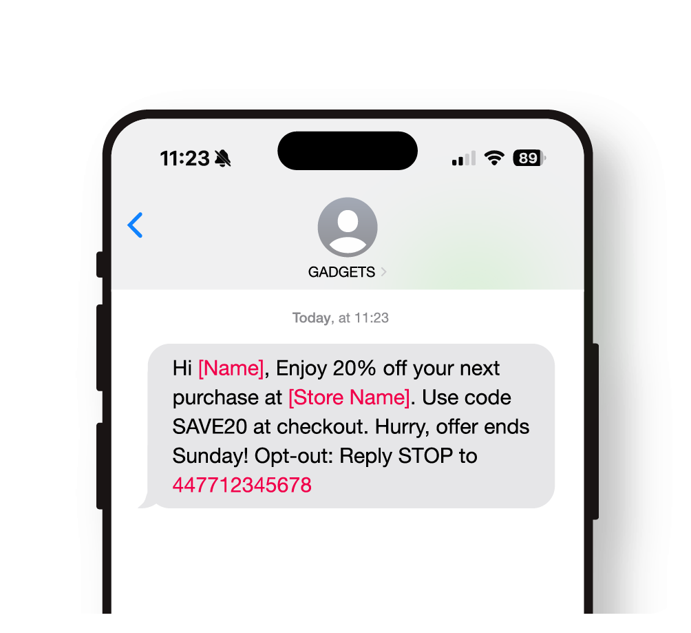 Messages must include accurate offers, clear business identification, and opt-out instructions. We'll help you format messages that comply with UK regulations.